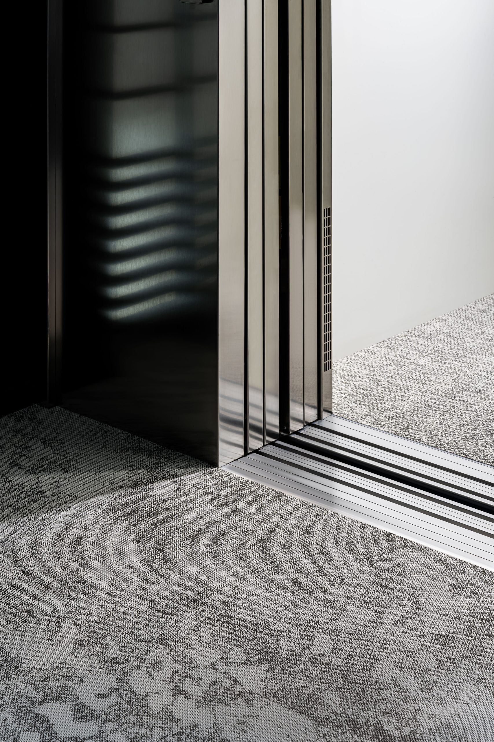 Bij deze configuratie is er keuze uit de 6 series van Dickson woven vinyl: Boréal, Mirage, Allure, Ecume, Elégance en Shape Lab. “Boréal heeft een marmeruit-straling, Mirage heeft een voelbare textuur maar is toch gesloten, Allure heeft een geribbeld patroon dat doet denken aan leer, Ecume heeft patronen en tinten die hun inspiratie vinden in de maritieme wereld en Elégance valt op door een zachte, fluweelachtige uitstraling. Shape Lab kent combineerbare vormen als rechthoeken, driehoeken en een halve hexagoon plus onderscheidende elementen die alleen met elkaar kunnen worden gecombineerd, zoals een volledige hexagoon en een prisma vorm. Maar binnen deze range is het aantal combinaties uiteraard ontelbaar en dat maakt dit extra interessant voor de architect of designer die op zoek is naar unieke vormen en patronen.”