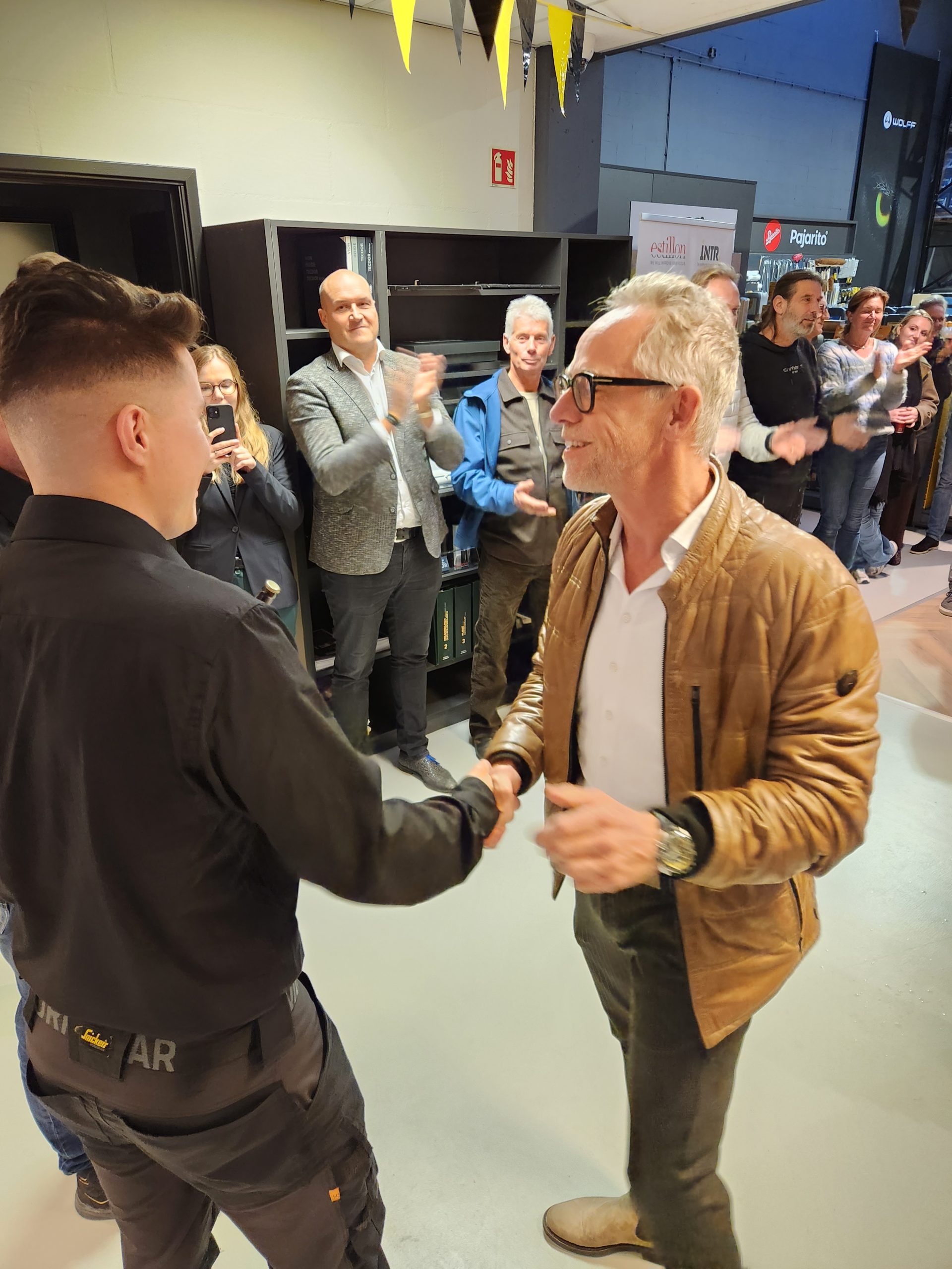 In zijn openingswoord refereerde Gerben (op de foto hierboven) met een paar grappen aan de wisselende reputatie van de lokale voetbalclub (het stadion ligt in de directe omgeving van deze vestiging), zei hij zijn jas aan te houden vanwege de kwalijke reputatie van de hoofdstad (wat direct leidde tot grappige reacties vanuit de toehoorders) en voegde hij toe: “Het pand is supergoed gelukt. Ik bedank iedereen die gewerkt heeft aan het tot stand komen van deze mooie locatie die heel goed bereikbaar is en alles in huis heeft om onze klanten, jullie, te ondersteunen.” Hij bedankte medewerkers Robin en Michel persoonlijk met een attentie, zij knipten het spreekwoordelijke lint bij de ingang door. De opening werd omlijst door een zeer smakelijke catering en door het afspelen van sfeervolle lokale muziek.