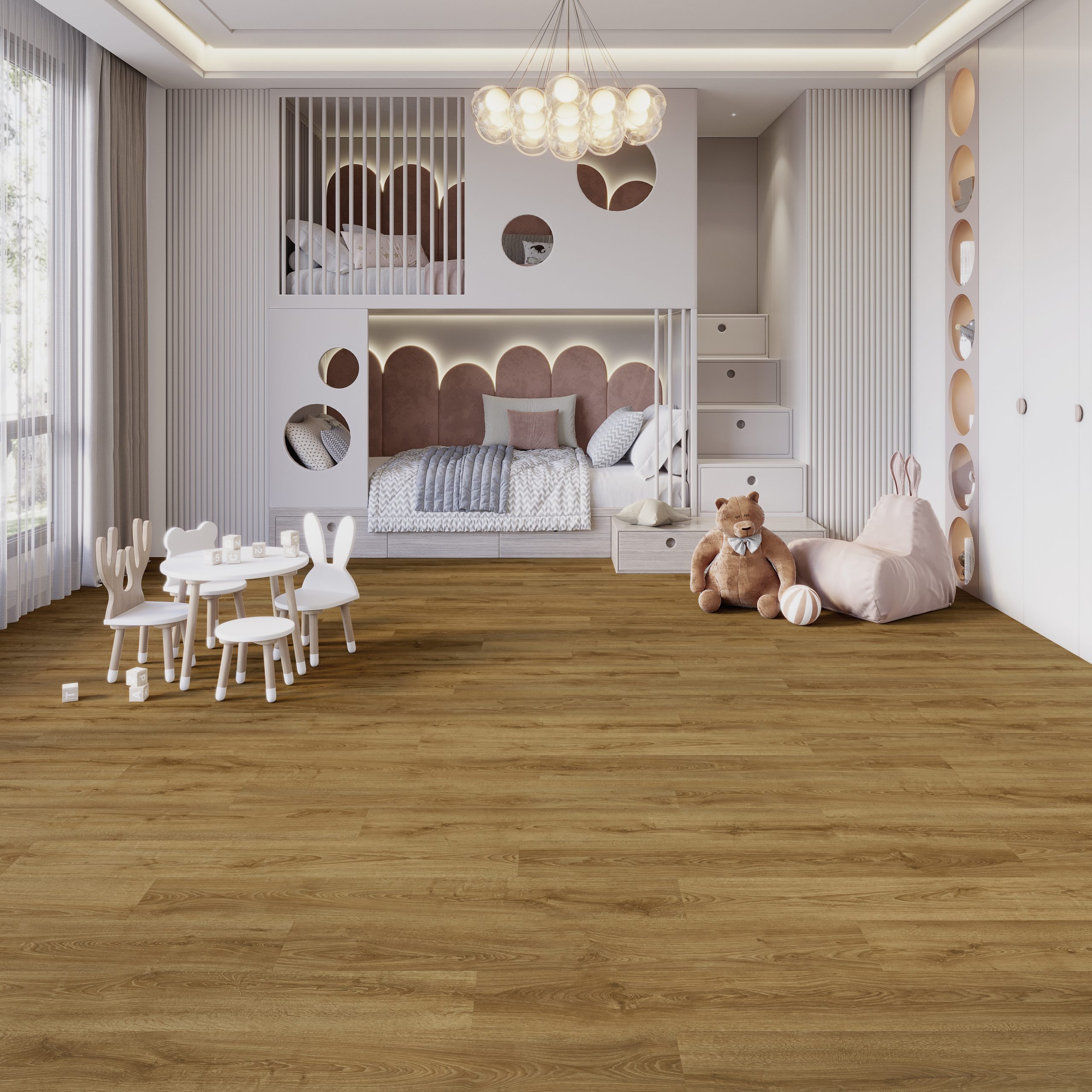 De tien click-varianten met geïntegreerde IXPE-contactgeluidsisolatie zorgen voor een efficiënte installatie zonder extra materiaal. Technische voordelen zoals maatvastheid, hoge vochtbestendigheid en een lage opbouwhoogte maken de vloer ideaal voor zowel nieuwbouw als renovatie. Dankzij het slijtvaste oppervlak zijn de JOKA Designvloeren 555 Evolut ook geschikt voor intensief gebruikte ruimtes – zowel in woningen als in projecttoepassingen. De dryback in combinatie met de FlexPro Pure onderlaag en de click-variant met IXPE-onderlaag zijn beide aan het einde van hun levensduur 100% recyclebaar.