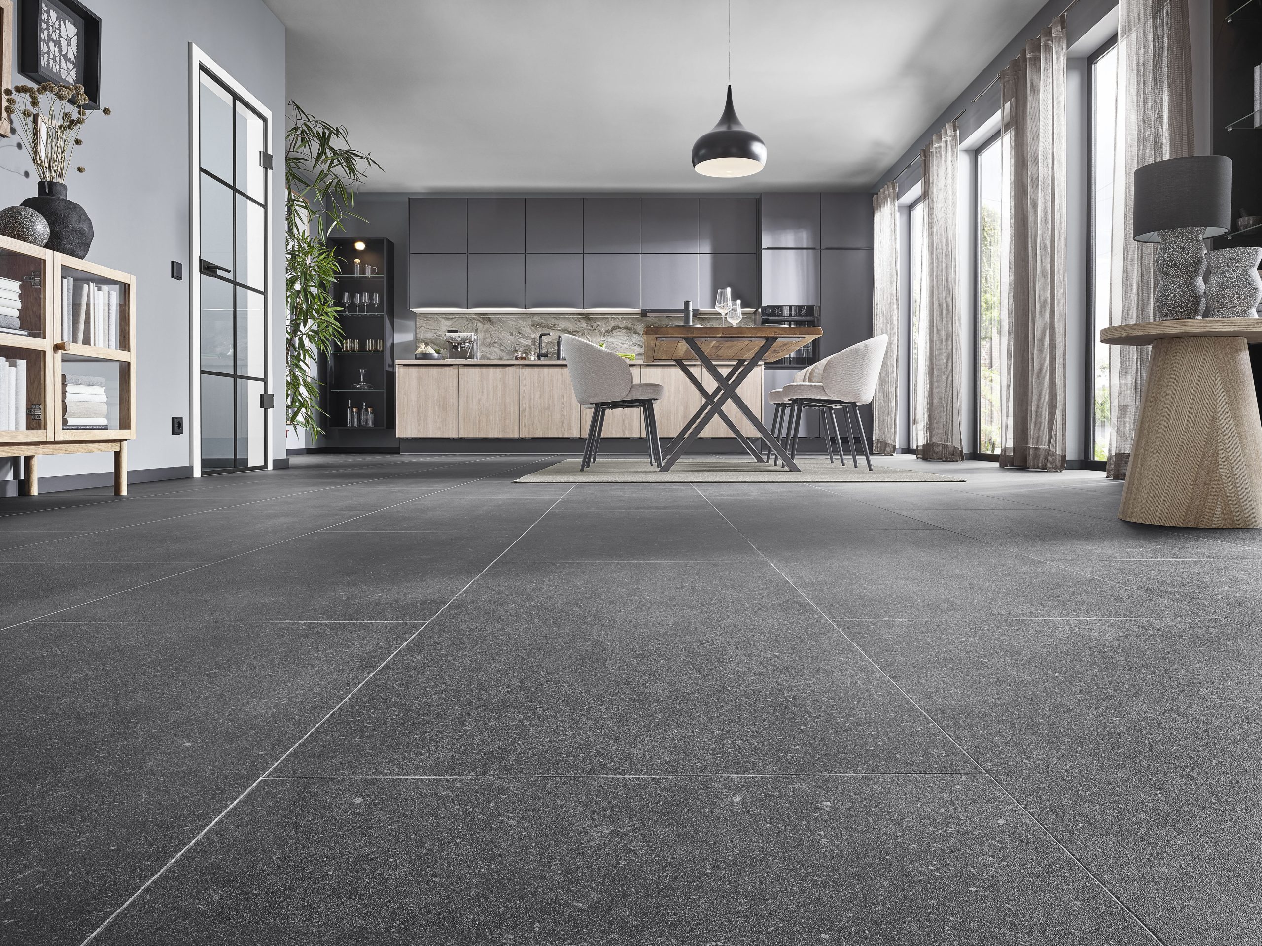 Jordan, een van de toonaangevende leveranciers van vloerbedekkingen, hout, houtmaterialen, deuren, behang en interieurstoffen in Midden-Europa, zet ook hier in op designvariatie en slijtvaste kwaliteiten. De diversiteit aan dessins van de JOKA Designvloeren 555 Evolut omvat 22 decors, waaronder 16 hout- en zes steenoptieken. Elf van de oppervlakken zijn synchroon geperst, wat zorgt voor een bijzonder authentieke uitstraling. Synchroon persing (ook wel EIR – Embossed in Register genoemd) is een proces dat wordt toegepast bij de productie van vinylvloeren. Hierbij volgt de oppervlaktestructuur exact het decorbeeld, dat wil zeggen het opgedrukte ontwerp. Zo ontstaat een bijzonder realistisch en natuurgetrouw effect, dat heel dicht in de buurt komt van echt hout of steen. Naast het populaire plankformaat kunnen geselecteerde decors ook in trendy visgraat- of chevronpatroon worden gelegd.